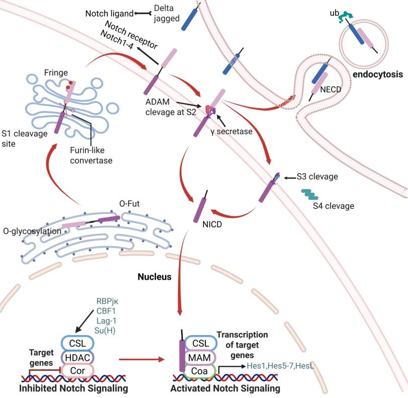 Notch信号通路是后生动物中高度保守的细胞间通讯通路,对细胞命运决定起着关键的调控作用。其经典通路主要由受体、配体及细胞内效应分子等核心组件构成。近年来,随着神经生物学领域研究的不断深入,该通路在精神障碍发生发展中的重要作用逐渐被揭示。在自闭症、双相情感障碍、精神分裂症等疾病中,Notch信号通路通过调控神经元发育与突触可塑性,影响疾病病理进程;在焦虑症、抑郁症、创伤后应激障碍及神经认知障碍中,该通路同样参与疾病发生机制,成为影响疾病进展的重要分子通路之一。